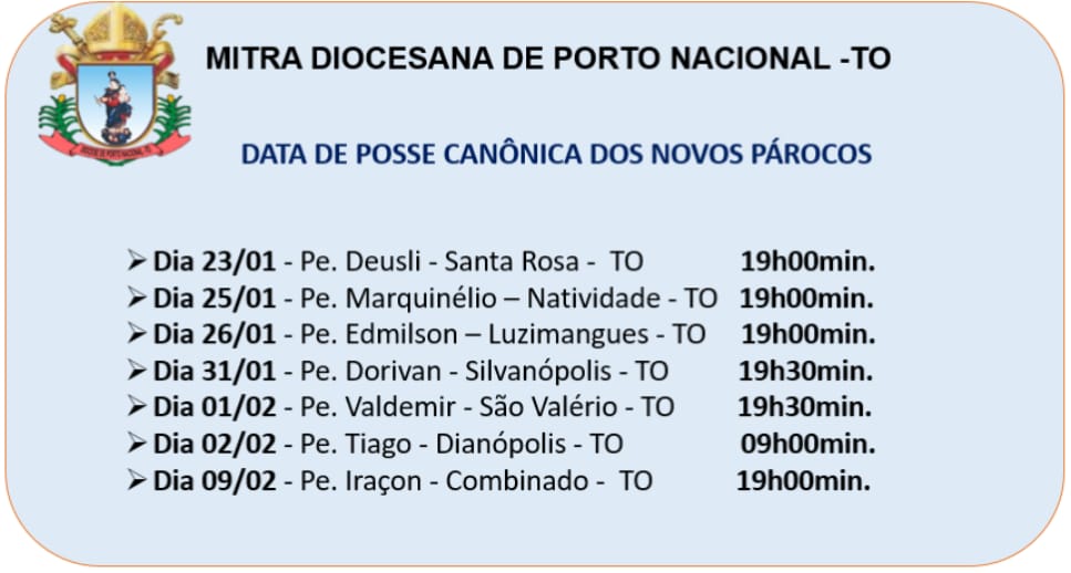 Destaque, Notícias Diocesanas Datas de posse dos novos Párocos. Leia Mais Whatsapp Facebook-f Pinterest Twitter Destaque, Notícias Diocesanas Datas de posse dos novos Párocos. Leia Mais Whatsapp Facebook-f Pinterest Twitter