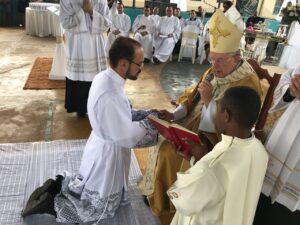 Na manha do dia 06 de janeiro de 2017, na Comunidade de Santo Antônio, na cidade de Ipueiras-TO, pertencente à Paróquia de Sant’Ana (Silvanópolis-TO), durante a Solene Celebração Eucarística presidida por Sua Excelência Reverendíssima D. Romualdo Matias Kujawski, pelo gesto da imposição das mãos e oração consecratória, o acólito Leandro da Silva Lemes recebeu o Sacramento da Ordem, no grau do Diaconato. Em sua homilia, D. Romualdo falou da importância da humildade na vida do servo, trazendo à memória a imagem dos reis magos. Estiveram presentes vários Sacerdotes de nossa Diocese, entre eles o Vigário Geral, Pe. Valdemir, Pe. Tiago Augusto, Vigário Forâneo de Natividade e Pároco da Paróquia de Sant’Ana de Silvanópolis, Pe. Heldeir Gomes, Chanceler e Reitor do Seminário Diocesano São José. Além da presença de diáconos, seminaristas e grande número de fiéis. Diácono Leandro assumirá o trabalho pastoral na cidade de Monte Alegre-GO.