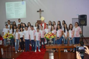 Semana passada, Dom Romualdo passou crismando nas paróquias: Fátima, Aliança e São Salvador. Também celebrou um dia da novena de Nossa Senhora das Graças em Palmeirópolis. Administrou o sacramento da Crisma no Colégio Sagrado Coração de Jesus em Porto Nacional. Em Fátima, ainda benzeu o novo escritório paroquial. “Não aumentemos o sofrimento do Cristo Rei do Universo com os nossos pecados que apertam a coroa dos espinhos Dele”. Sintetizou dom Matias