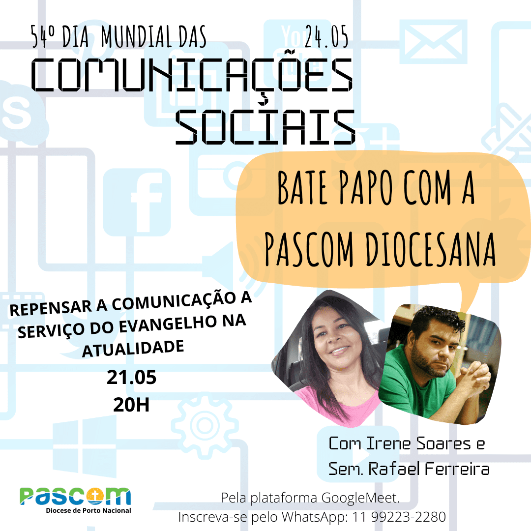 Destaque, Notícias Diocesanas, Pastorais e Movimentos PASCOM DIOCESANA PROMOVE BATE PAPO ONLINE COM AGENTES DA PASTORAL NA DIOCESE DE PORTO NACIONAL Leia Mais Whatsapp Facebook-f Pinterest Twitter Destaque, Notícias Diocesanas, Pastorais e Movimentos PASCOM DIOCESANA PROMOVE BATE PAPO ONLINE COM AGENTES DA PASTORAL NA DIOCESE DE PORTO NACIONAL Leia Mais Whatsapp Facebook-f Pinterest Twitter