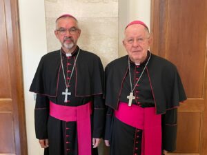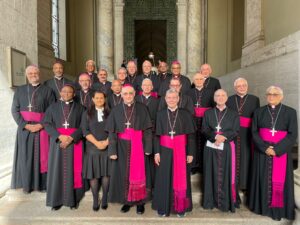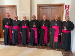 Hoje, às 9 horas, teve início a Visita Ad Limina Apostolorum com os Bispos dos Regionais Norte 2 e Norte 3, com a Audiência com o Santo Padre, Papa Francisco. O Santo Padre, Papa Francisco, acolheu carinhosamente todos os bispos, juntamente com os Secretários Executivos dos Regionais, Cristiane Araújo (Norte 2) e Pe. Heldeir Gomes (Norte 3). A “Visita ad Limina Apostolorum” significa “no limiar, na soleira, na entrada ou no limite (das Basílicas) dos apóstolos (Pedro e Paulo). Trata-se, pois, de uma Visita Pastoral que os bispos devem fazer, de cinco em cinco anos (cf., Cânones 399-400 do CDC), ou por outras periodicidades, aos túmulos dos apóstolos, ao Papa e aos outros organismos pastorais, de serviços e de evangelização, no Vaticano e em Roma. O encontro dos nossos Bispos com o Papa Francisco durou cerca de duas horas.