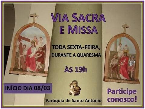 Notícias das Paróquias e Foranias Participe da Santa Missa e Via Sacra toda sexta-feira durante a quaresma Leia Mais Whatsapp Facebook-f Pinterest Twitter Notícias das Paróquias e Foranias Participe da Santa Missa e Via Sacra toda sexta-feira durante a quaresma Leia Mais Whatsapp Facebook-f Pinterest Twitter