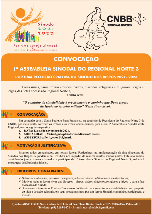 Notícias das Paróquias e Foranias, REGIONAL NORTE 3 Inscrição na 1.ª Assembleia Sinodal Norte 3 Leia Mais Whatsapp Facebook-f Pinterest Twitter Notícias das Paróquias e Foranias, REGIONAL NORTE 3 Inscrição na 1.ª Assembleia Sinodal Norte 3 Leia Mais Whatsapp Facebook-f Pinterest Twitter