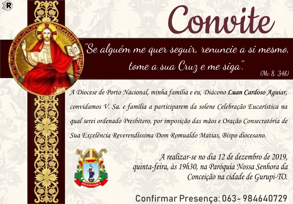 Vocacional Convite de Ordenação Presbiteral do Diác. Luan Cardoso Leia Mais Whatsapp Facebook-f Pinterest Twitter Vocacional Convite de Ordenação Presbiteral do Diác. Luan Cardoso Leia Mais Whatsapp Facebook-f Pinterest Twitter