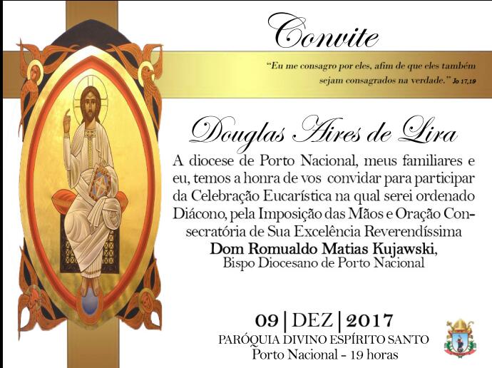 Vocacional Convite para Ordenação Diaconal do Seminarista Douglas Aires Lira, dia 09 as 19hs Leia Mais Whatsapp Facebook-f Pinterest Twitter Vocacional Convite para Ordenação Diaconal do Seminarista Douglas Aires Lira, dia 09 as 19hs Leia Mais Whatsapp Facebook-f Pinterest Twitter