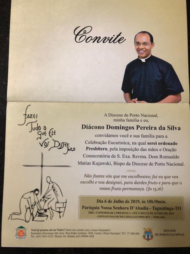 Convite de Ordenação Sacerdotal do Diác. Domingos Pereira