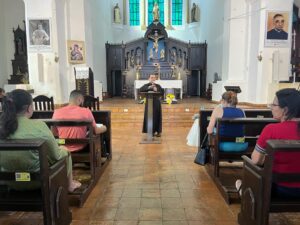 Após a Santa Missa, celebrada no Centro Paroquial da Santos Reis, pelo Pe. Eldinei Carneiro, os estudantes almoçaram e seguiram à Catedral para conhecer sua história e a do Seminário São José. Também visitaram o Memorial do Padre Luso e a programação finalizou com a Palestra “Espiritualidade e Vida Cristã”, ministrada pelo Padre Luan Aguiar, na Catedral.