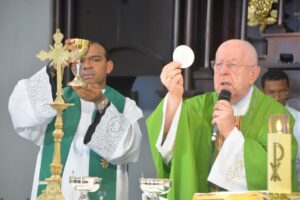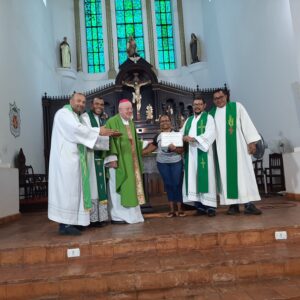 O encontro finalizou com a missa solene na Catedral de Nossa Sra das Mercês presidida pelo Bispo Dom Romualdo Matias, na sua fala, ele destacou: “A teologia é o caminho da fé racionalizada, com esse aprofundamento vocês estarão mais habilitados para atuarem nas comunidades, parabéns a todos vocês, especialmente aos coordenadores”. A missa foi concelebrada pelos Padres Edisley Batista (Paróquia Cristo Operário de Porto Nacional), Eldinei Carneiro (Catedral), Jaine Gomes (Paróquia Divino Espírito Santo de Porto Nacional) e Wagner Correia (Paróquia São João Batista de Aliança do Tocantins). O Pe. Dorivan Ribeiro (Paróquia Santana de Silvanópolis) esteve na parte da manhã.