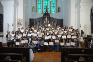 Ao final da missa, a Jovem Lívia Geralda Queiroz, da Paróquia Nossa Sra Aparecida de Combinado – TO, fez o discurso em nome da turma: “Quando iniciamos esse estudo, não sonhamos com esse dia, foi tudo maravilhoso, sentiremos falta das segundas-feiras, mas com essa base teremos mais capacidade de ajudar nossas comunidades, gratidão ao nossos mestres”. Em seguida foi entregue os certificados de conclusão. Aproximadamente 90 alunos concluíram o curso. A missa foi transmitida ao vivo nas redes sociais da Paróquia Catedral Nossa Sra das Mercês e Portal Porto Mídia.
