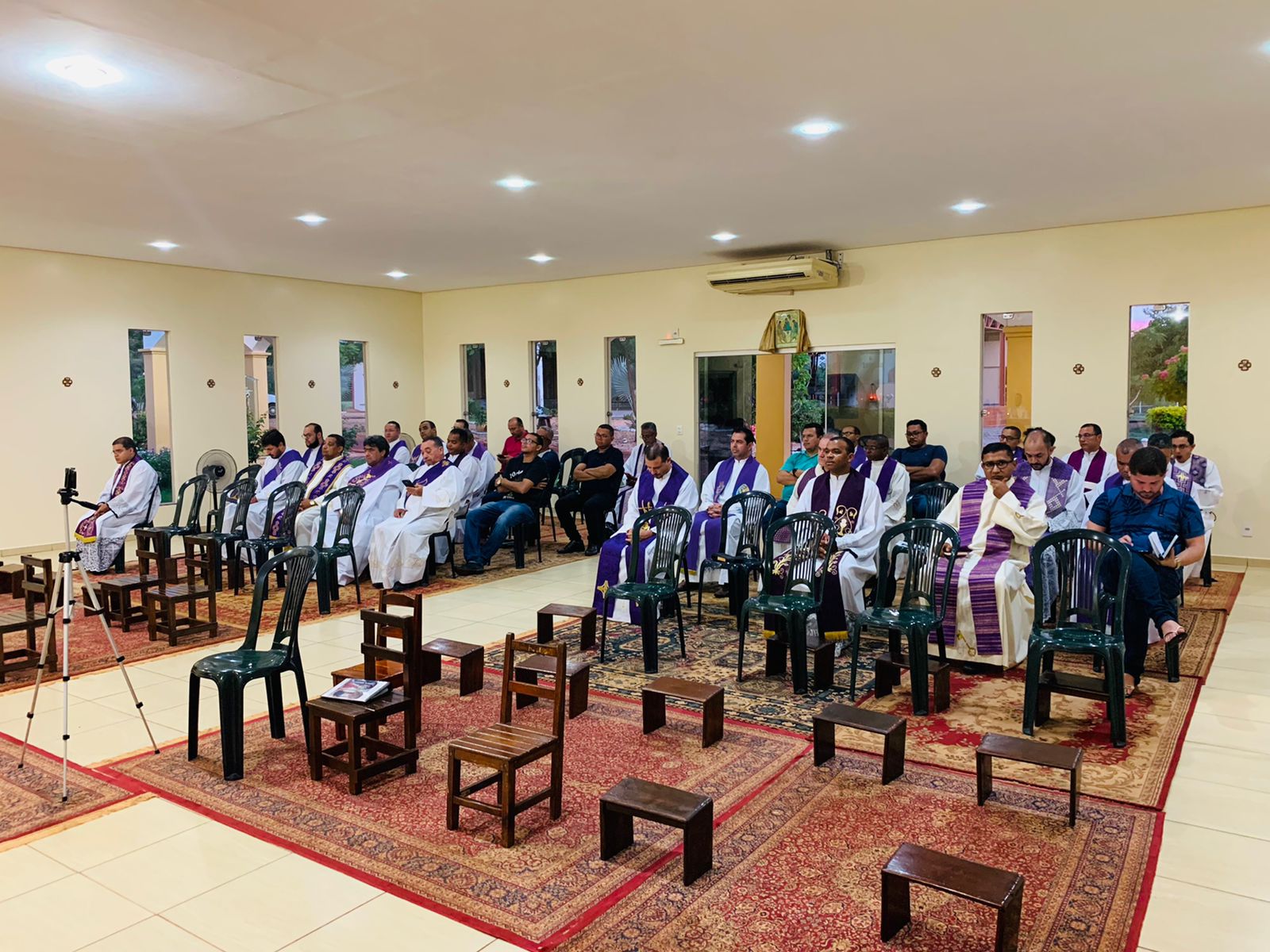 A Diocese de Porto Nacional – TO realizou o Tradicional Retiro do Clero Anual na Comunidade Sementes do Verbo, em Palmas – TO, Capital do Estado. O pregador foi o Pe. João Thimóteo de Oliveira, da Arquidiocese de Porto Velho – RO, que propôs a espiritualidade do Prado, criada por Pe. Beato Antônio Chavier, baseada em três momentos para ajudar os padres diocesanos: 1 – Jesus na manjedoura, 2 – Jesus na cruz e 3 – Jesus no sacrário. Para o Bispo Diocesano Dom Romualdo Matias o encontro serviu como fortalecimento da fé: “Estou muito feliz com a participação de quase 100 por cento do clero, estamos aqui para renovar e fortalecer a nossa fé, em tudo Deus seja louvado”. O Pe. Thimóteo afirmou que o retiro foi uma bênção do Senhor: “Foi um momento de muitas graças, esse clero é diferenciado, aqui aprendi, mais que ensinei, a minha gratidão a Dom Romualdo, Padres Edisley, Eldinei e todo clero”.