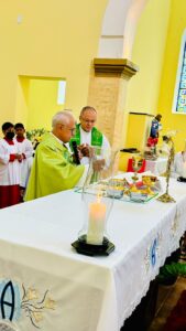 Dom José Moreira da Silva, Bispo Diocesano de Porto Nacional – TO, presidiu neste Domingo, 22, às 07h30, a Missa do 3º Domingo do Tempo Comum na Paróquia Nossa Sra. D´ Abadia em Taguatinga – TO, sudeste do estado. Na homilia, Dom Moreira refletiu às 3 virtudes da Igreja Missionária: O Chamado, a Missão e a Unidade. Pe. Marcos Aurélio Ramalho, Pároco de Taguatinga, concelebrou a Santa Missa. A Celebração Eucarística contou grande participação dos fiéis, que acolheram e manifestaram o afetuoso carinho a Dom Moreira, que foi Pároco em Taguatinga por dois anos.