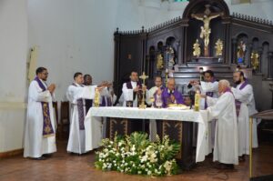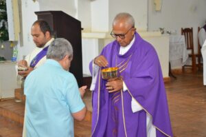 No início da celebração o Pároco Pe. Eldinei Carneiro deu as boas-vindas: “Acolho os irmãos no sacerdócio, de maneira especial Dom José Moreira, Bendito aquele que vem em nome do Senhor, queremos caminhar juntos com o senhor”.