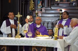 Na homilia Dom Moreira pontuou: “Foi meu vigário paroquial, um homem que evangelizava com humildade e paixão, apesar do motivo da celebração essa é minha primeira missa depois da minha eleição”.