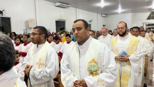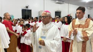 Na homilia, Dom Moreira destacou a importância da celebração: “Pe. Divino o sacerdócio é dom de Deus para o bem da Igreja e edificação do Reino de Deus, que o senhor renove cada dia o seu ministério em Jesus Cristo, que é o caminho, a verdade e a vida”.