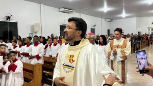 Dom José Moreira presidiu na noite de ontem (16), às 19:30, em Peixe – TO, a missa em ação de graças pelos 20 anos de Ministério Sacerdotal do Pe. Divino Rodrigues Maciel.