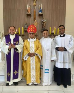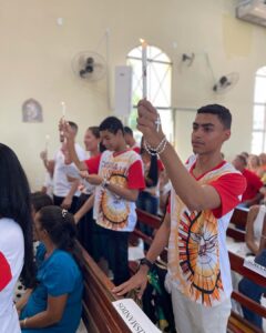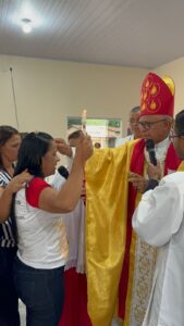 Por ocasião do terceiro domingo do advento no dia 17/12/2023, onde a igreja comemora o domingo da alegria, a paróquia Bom Jesus dos Aflitos teve a satisfação de receber o bispo diocesano Dom José Moreira para conferir o Sacramento do Crisma a 86 jovens e adultos, sendo eles das Comunidades Matriz, Imaculada Conceição e Santo Antônio. Em missa presidida por dom José Moreira e concelebrada pelos padres Samuell Oliveira, Pároco e Vilmário Soares. Houve um momento marcante de evangelização. Dom Moreira, logo no início da Santa Missa, dirigiu-se aos crismandos e disse que não estavam participando de uma formatura e sim recebendo a benção para o engajamento na igreja. Durante a homilia, o bispo dirigiu-se à comunidade paroquial e perguntou sobre a alegria de ser Cristão, motivando os fiéis a serem alegres no Senhor porque Deus quer cristãos alegres. Motivou os crismandos e todos os fiéis a guardarem no coração somente o que é bom, o que for lixo que seja queimado, descartado, para que reine o amor, a paz. Aos crismandos afirmou que estão para confirmar a fé que receberam no dia do batismo, renovando-a no Sacramento da confirmação. Após a confirmação das promessas batismais os jovens e adultos acompanhados de seus padrinhos foram até o bispo para receber o óleo do Crisma e concluírem o rito do Sacramento. Na oportunidade, a catequista Aldirene Paiva relembrou o que havia falado nos encontros: “Jesus está sempre de braços abertos, pronto para nos acolher. Ele que é o caminho a verdade e a vida”, agradeceu aos pais e crismados pela confiança e desejou que todos permaneçam de olhos fixos em Jesus.