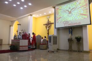 Na noite do último sábado, (22), 62 jovens receberam o Sacramento da Crisma, na Paróquia Nossa Senhora da Conceição em Gurupi, celebração sacramental conduzida pelo nosso Bispo Diocesano Dom Romualdo Matias Kujawski ,os crismandos receberam os dons do Espírito Santo, este sacramento não é apenas um símbolo, mas, é a presença do Espírito Santo. É um ato de fé realizar e participar desse sacramento. De acordo com o Catecismo da Igreja Católica, a Crisma pertence, juntamente com o Batismo e a Eucaristia, aos três sacramentos da iniciação cristã da Igreja Católica. Neste sacramento, o fiel é encorajado e fortalecido para uma vida de testemunho de amor a Cristo.