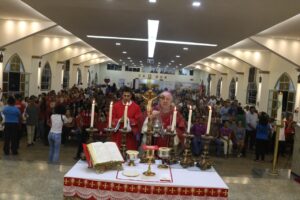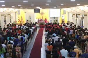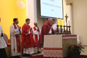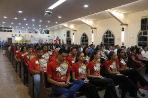 Na noite do último sábado, (22), 62 jovens receberam o Sacramento da Crisma, na Paróquia Nossa Senhora da Conceição em Gurupi, celebração sacramental conduzida pelo nosso Bispo Diocesano Dom Romualdo Matias Kujawski ,os crismandos receberam os dons do Espírito Santo, este sacramento não é apenas um símbolo, mas, é a presença do Espírito Santo. É um ato de fé realizar e participar desse sacramento. De acordo com o Catecismo da Igreja Católica, a Crisma pertence, juntamente com o Batismo e a Eucaristia, aos três sacramentos da iniciação cristã da Igreja Católica. Neste sacramento, o fiel é encorajado e fortalecido para uma vida de testemunho de amor a Cristo.