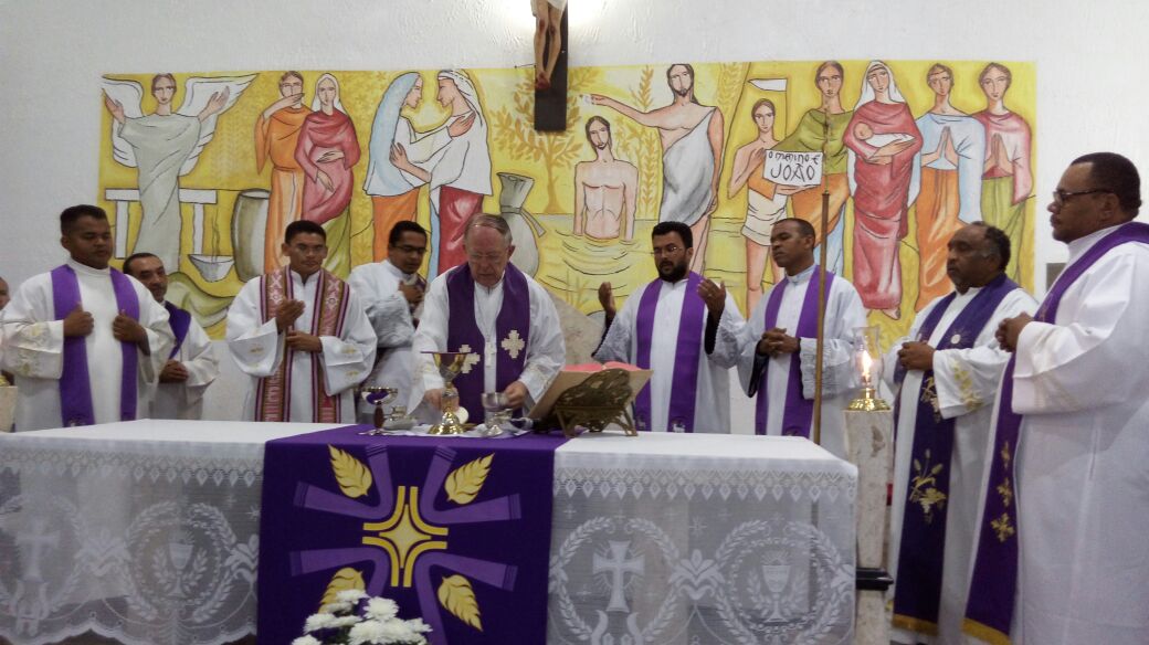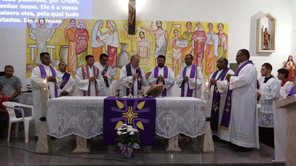 Na noite de ontem (sexta-feira), às 19h30, Dom Romualdo Matias presidiu a missa de posse do Pe. Divino Maciel, na Paróquia São João Batista, em Aliança do Tocantins, Região Sul do Estado. No início da celebração Dom Romualdo agradeceu os trabalhos pastorais do Pe. José Fernando, “A posse é sinal da transitoriedade, isso demonstra, que a Igreja está sempre em movimento, isto é, ela é dinâmica”. Dom Romualdo acolheu também os padres concelebrantes e as autoridades civis. A homilia foi feita pelo Vigário Geral, Pe. Valdemir Alves. Ele destacou vários pontos da vida presbiteral: “O sacerdote é um enviando de Deus, instrumento da graça na comunidade”. E finalizou: “O sacerdote nessecita da comunhão e participação da comunidade. O Pe. Divino é inteligente, simples e humilde. O senhor vem para ser um missionário da paz”. Ao final da missa, várias homenagens foram prestadas. A primeira pelo prefeito de Aliança, Coronel Tavares, “Pe. Divino, ao receber a convocação do bispo, o senhor respondeu com disponibilidade, mas também enfrentará os desafios, mas conte conosco, estamos aqui para o que precisar. O senhor tem a missão de aproximar a comunidade de Deus“. A leiga Welma e o Esposo, agradeceram ao Dom Romualdo pela nomeação do Pe. Divino para o seu novo trabalho pastoral, ainda agradeceram as atividades do Pe. José Fernando. E concluíram, em toda ação da Igreja tem sempre o fio condutor de Deus, estamos aqui, conte conosco”. O Pe. Domingos destacou a importância das irmãs dominicanas na vida vocacional de ambos, ele e o irmão. O jovem Roberto sua paróquia, cantou a música amigos para sempre. Os acólitos de Figueirópolis homenagearam o empossado com a música, te seguirei, do Frei Gilson. O Pe. Divino agradeceu primeiramente a Deus pelo chamado. “São 15 anos servindo ao Senhor, que me escolheu ainda no ventre materno”. Agradeceu ao Dom Romualdo pela confiança e amizade. As comunidades de Peixe, Cariri e Figueirópolis mencionou as boas convivências e momentos de fé e vida. Destacou a presença dos colegas e as autoridades civis. E finalizou, “Quando estava chegando na cidade, eu vi uma torre, essa torre marcará para mim o início de uma nova missão”. Os concelebraram os padres Vanderlan (Alvorada), Jackson (Porto Nacional), Domingos (Gurupi), Eldinei (Gurupi) e Valdemir (Vigário Geral e Natividade). Participaram também os diáconos Douglas (Fátima) e Francisco (Gurupi). Também as Irmãs Pastorinhas de Figueirópolis. As autoridades civis: Prefeito de Aliança, Coronel Tavares, Prefeito de Cariri, Júnior Marajó, Vice-Prefeita de Gurupi, Dolores Nunes e Dra Cibele, Juíza de Direito da Comarca de Peixe. A posse foi marcada por um clima de alegria, os ritos de assentar na cadeira do presidente, entrega dos santos óleos, estola roxa e as chaves da Igreja. A missa contou com um grande número de fiéis.