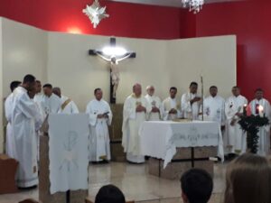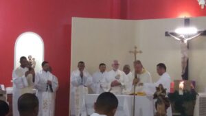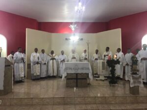 Dom Romualdo Matias, Bispo Diocesano, presidiu na noite de ontem, a Missa em Ação de Graças pelo 10° Aniversário Sacerdotal do Pe. Francisco na Paróquia Divino Espírito Santo, em Peixe – TO, região Sul do Estado. Na sua homilia, Dom Matias enfatizou o sentido de abrir o coração para as coisas de Deus: “Ele veio para os seus, mas os seus não acolheram”. O Ordinário Local, também falou sobre as duas personalidades do advento: João Batista e Maria, o primeiro fazia ao povo um convite de conversão: “Convertei-vos e credes no evangelho, pois o Reino de Deus está próximo de vós”. Já Maria, conservava esses fatos no silêncio do seu coração. Ambos indicaram a luz verdadeira, Jesus. Por fim, Dom Romualdo dirigiu uma palavra ao homenageado da noite: “Pe. José Francisco, que o senhor possa sempre respirar os dois pulmões da igreja: “A Palavra e a Eucaristia, que todas as suas ações tenham Jesus como centro”. Ao final da missa, o Vigário Geral, Pe. Valdemir falou em nome do Clero destacando as características positivas do aniversariante: “O senhor é sacerdote humano, simples e com espírito de São João Maria Vianney, por isso, estamos aqui, por ser um sacerdote solidário com todos”. O Vereador Gleyson, representando a comunidade peixense expressou com palavras profundas o sentido do ministério sacerdotal, “O sacerdote deve fazer da sua própria vida um culto litúrgico”. As homenagens finalizaram com duas músicas cantada pelo coral, “aonde mandar eu irei” e “aleluia”.
