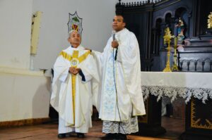 O Bispo Dom Romualdo Matias presidiu na noite do dia (06), na Catedral Nossa Sra das Mercês, em Porto Nacional – TO, a missa em ação de graças pelos jubileu de ouro do Pe. Osteval Gomes da Glória. Na homilia, Dom Romualdo frisou: “Rendemos graças ao Senhor por esse servidor da Igreja, por todo seu empenho e dedicação, Pe. Osteval é um homem de Deus”.