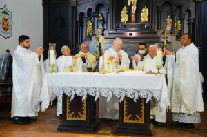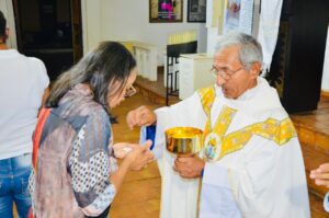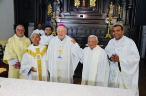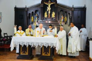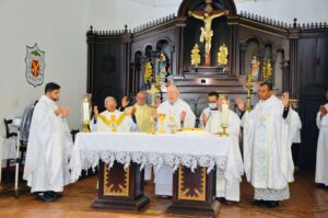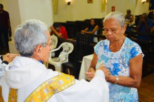 O Bispo Dom Romualdo Matias presidiu na noite do dia (06), na Catedral Nossa Sra das Mercês, em Porto Nacional – TO, a missa em ação de graças pelos jubileu de ouro do Pe. Osteval Gomes da Glória. Na homilia, Dom Romualdo frisou: “Rendemos graças ao Senhor por esse servidor da Igreja, por todo seu empenho e dedicação, Pe. Osteval é um homem de Deus”.