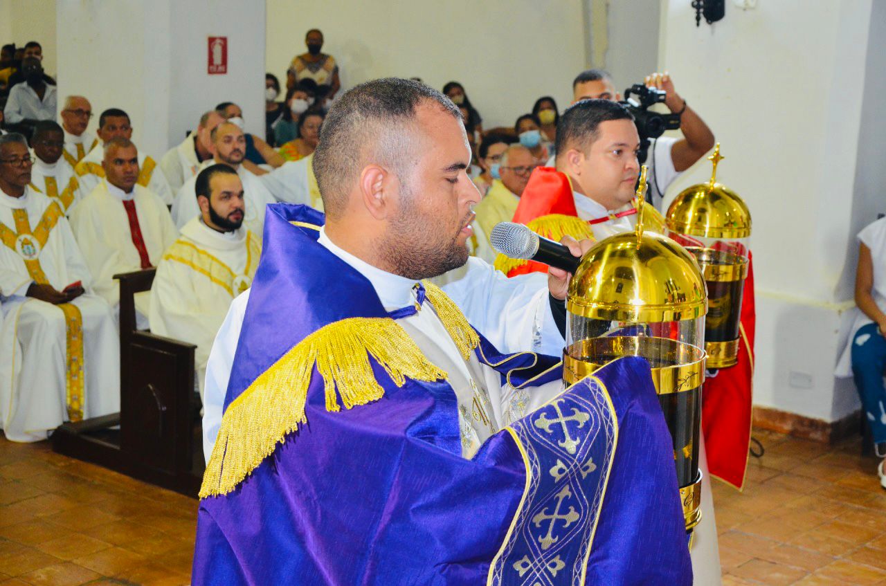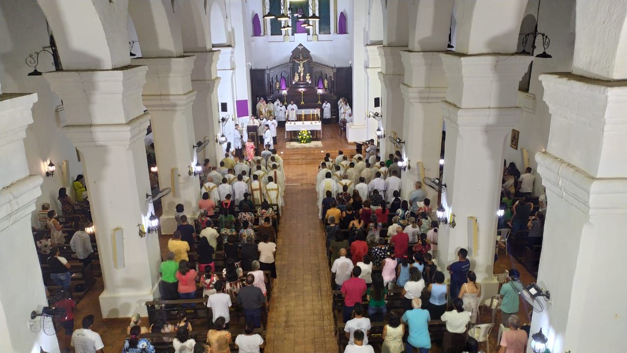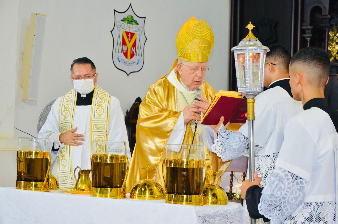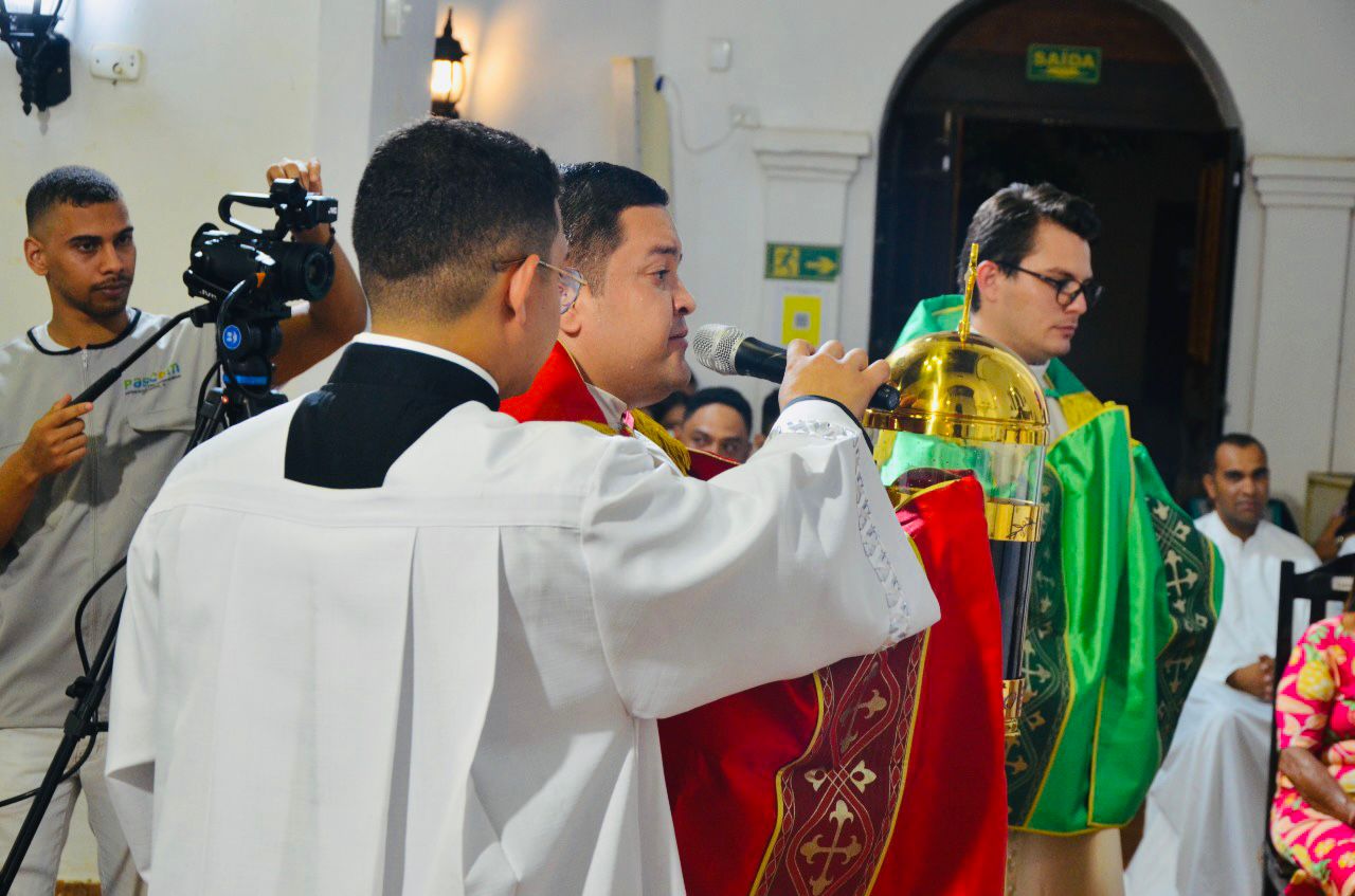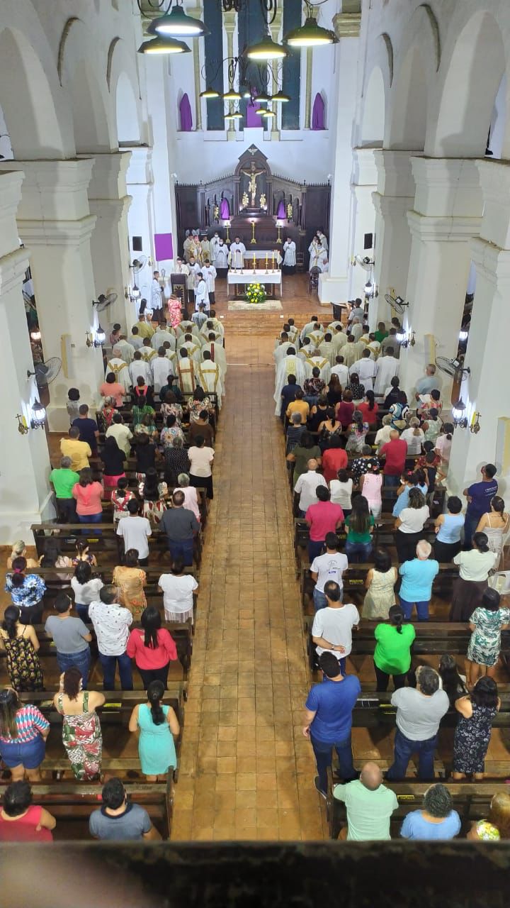 O Bispo Diocesano Dom Romualdo Matias presidiu na noite de ontem (11), às 19:00, a Missa dos Santos Óleos e da Unidade Diocesana, na Paróquia Catedral Nossa Sra das Mercês, em Porto Nacional – TO, Região Central do Estado. Na sua homilia Dom Matias enfatizou que os sacerdotes têm a marca de Cristo: “Vocês são escolhidos por Deus, não podemos parar nas dificuldades, a cruz faz parte desse ministério, vocês tem o selo do Cristo”.