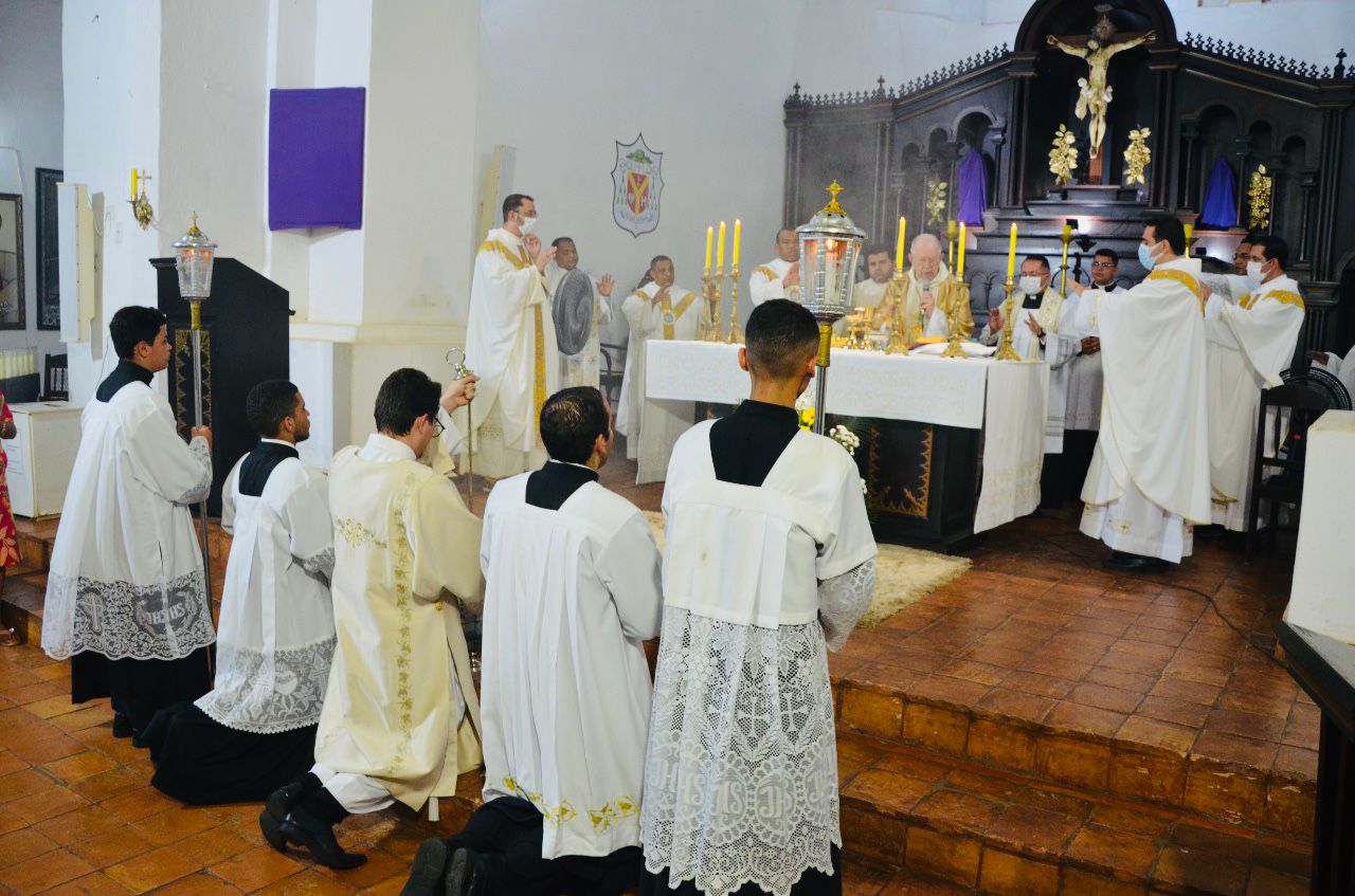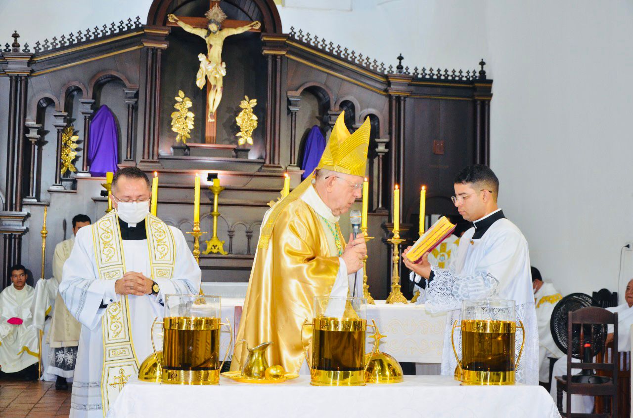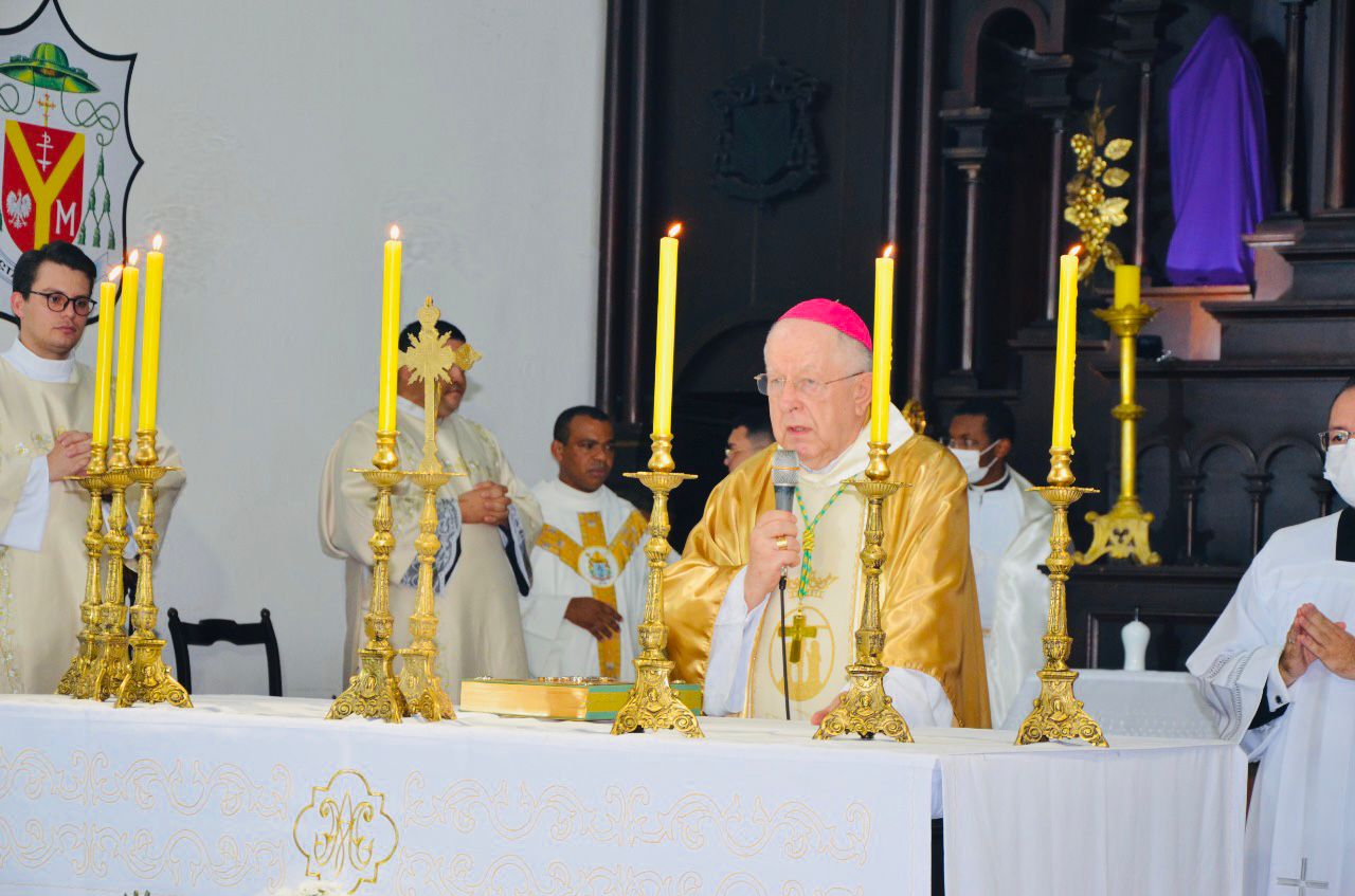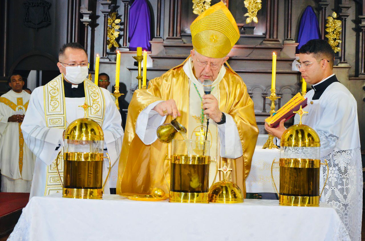 O Bispo Diocesano Dom Romualdo Matias presidiu na noite de ontem (11), às 19:00, a Missa dos Santos Óleos e da Unidade Diocesana, na Paróquia Catedral Nossa Sra das Mercês, em Porto Nacional – TO, Região Central do Estado. Na sua homilia Dom Matias enfatizou que os sacerdotes têm a marca de Cristo: “Vocês são escolhidos por Deus, não podemos parar nas dificuldades, a cruz faz parte desse ministério, vocês tem o selo do Cristo”.