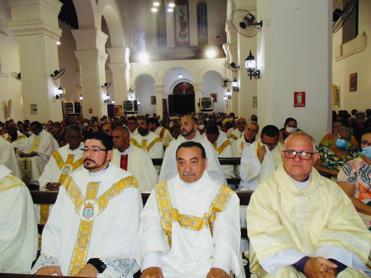 Ao final da missa o Pároco da Catedral Pe. Eldinei Carneiro salientou sobre a teologia da celebração eucarística e fez os agradecimentos aos paroquianos: “Gostaria de apresentar as quatro relações do sacerdote que nos ensina o Papa Francisco: 1 – Com Deus, 2 – Com o Bispo, 3 – Com o presbitério e 4 – Com o Povo de Deus”. Ele Ainda falou dos quatro pilares da comunidade primitiva: A – Fração do Pão, B – Eucaristia, C – Oração e D – Obediência aos Apóstolos. E finalizou: “Aquilo que nos une é mais do que aquilo que nos separa” (Papa João XXIII). O Pároco entregou uma fotografia oficial do Retiro do Clero para os colegas. Os fiéis Professores Wellington e Tatá falaram sobre a alegria da celebração e destacaram a comunhão da Igreja.