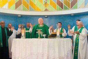 A missa foi transmitida ao vivo pelas redes sociais da Paróquia Catedral Nossa Sra das Mercês e com cobertura também do Portal Porto Mídia.