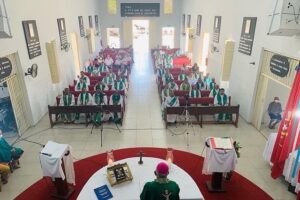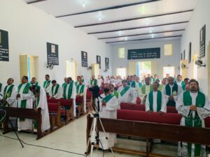 O Bispo Dom Romualdo Matias presidiu na manhã de ontem (09), a Romaria dos Padres e Diáconos no Santuário do Senhor do Bonfim, em Natividade – TO. Na homilia Dom Matias destacou a importância do sínodo e da caminhada diocesana: “O papa nos perde uma igreja no caminho sinodal: comunhão, participação e missão. Desejo que todos vocês sejam felizes nas atividades pastorais e edificando cada vez o Reino de Deus”.
