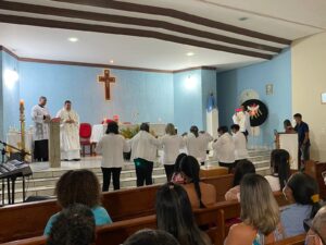 No último dia 29 de maio, Dom Romualdo Matias celebrou na Paróquia Nossa Senhora de Nazaré, em Brejinho de Nazaré a Missa do Sacramento do Crisma, e deu posse ao Novo Pároco e também a investidura de um grupo de leigas, depois de se prepararem, foram investidas ministras extraordinárias da comunhão.