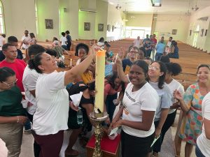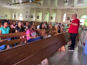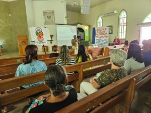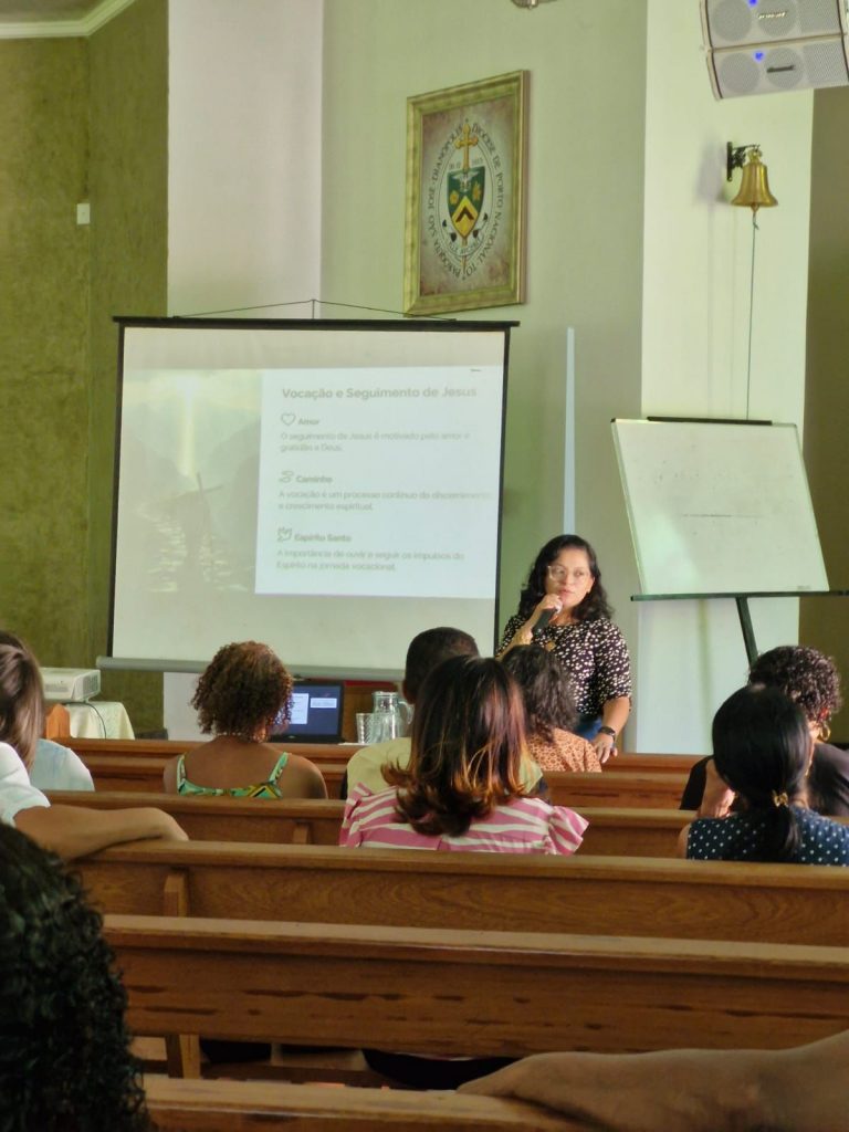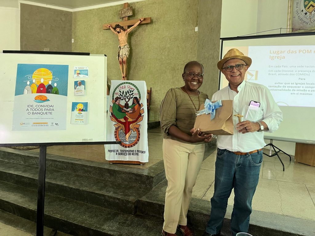 Logo após a celebração, a Irmã Regina da Costa Pedro, diretora nacional das Pontifícias Obras Missionárias (POM), conduziu uma palestra sobre a missão dos leigos. Durante sua fala, Irmã Regina destacou o papel das POM, que são uma rede de solidariedade e cooperação missionária, que têm como objetivo animar e sustentar a evangelização, especialmente em regiões e situações de maior necessidade.