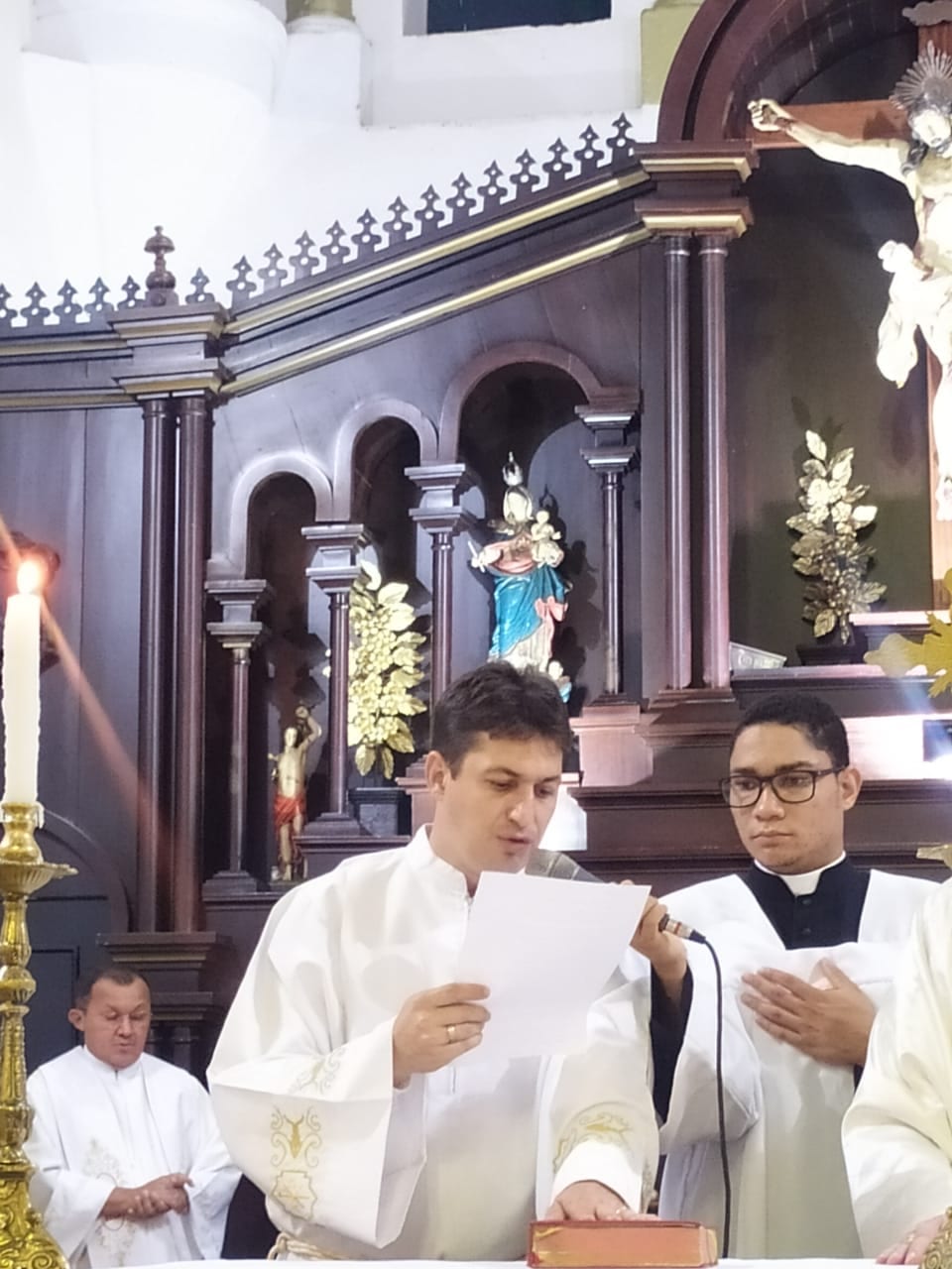 Concelebraram a santa missa: Pe. Jucimar Ribeiro, Pe. Douglas Aires, Pe. Haroldo Carvalho, Mons. Juraci e o pároco do aspirante, Pe. Domingos Maciel.
