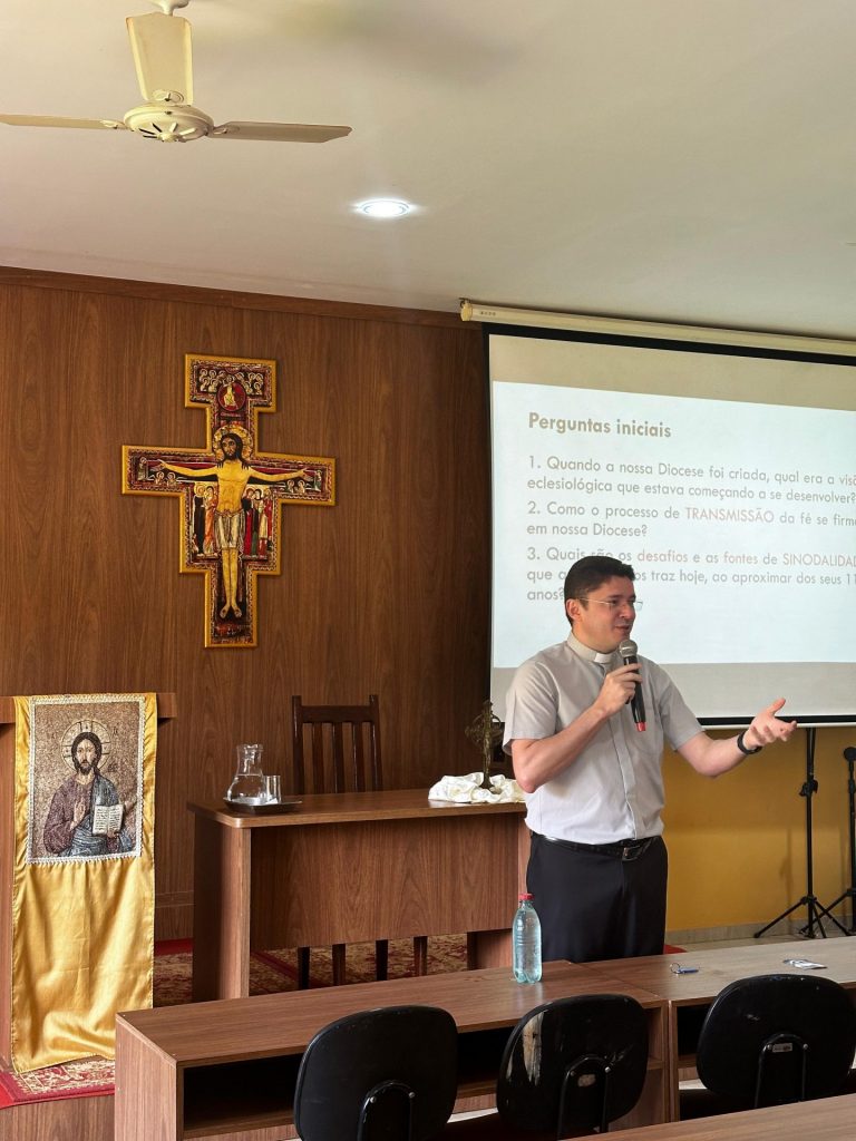 A manhã de formação foi dividida em dois momentos temáticos: 1º) A identidade presbiteral entre a sinodalidade e transmissão da fé; 2º) Práticas catequéticas em uma Igreja sinodal que está em Porto Nacional. A perguntas norteadoras usadas como norteadoras foram: “1) Quando a nossa diocese foi criada, qual era a visão eclesiológica que estava começando a se desenvolver? 2) Como o processo de transmissão da fé se firmou em nossa diocese? 3) Quais são os desafios e as fontes de sinodalidade que a diocese nos traz hoje, ao aproximar dos seus 110 anos? 4) Quando o perfil do cristão diocesano do futuro?”. À luz da parábola do Filho Pródigo e somada a temática da sinodaldade, Pe. Wagner externou uma meditação que, de modo geral, seguiu os termos de comunhão (herança e gratuidade), participação (da solidão à reconciliação) e missão (caminho, encontro e saída).