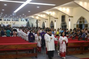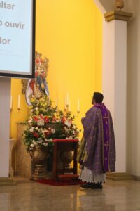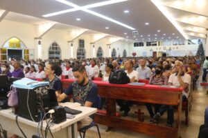 Um dos pontos fortes da Celebração além de sua Homilia que sempre toca em nossos corações foi o momento em que alguns membros de grupos e pastorais fizerem uma homenagem para nosso Pároco, fiéis lotaram a Paróquia de Nossa Senhora da Conceição.
