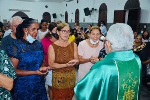 A missa contou com a participação de muitos fiéis. As missas estão sendo transmitidas pelas redes sociais da Paróquia Catedral Nossa Sra das Mercês, Portal Porto Mídia e Rádio 87,90.