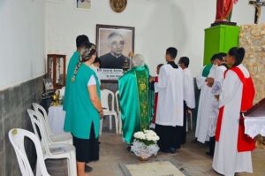 O Monsenhor Jones Pedreira presidiu na noite de terça-feira, (02), às 19:30, o terceiro dia do Tríduo da Romaria de Pe. Luso. Na homilia ele pontuou sobre a importância da vida do Pe. Luso: “O Pe. Luso foi um simples e de profunda oração, sempre estava na presença de Deus, a oração é reserva de Deus”.