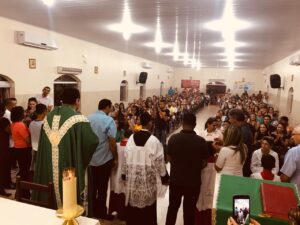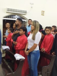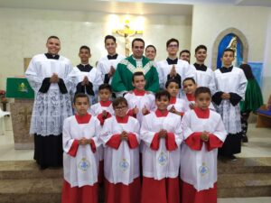 No ultimo domingo, dia 10, na Comunidade Imaculado Coração de Maria, na Praça das Mães em Porto Nacional, seis novos coroinhas e um novo acólito foram investidos pelo Pe. Heldeir Carneiro para o serviço do altar.