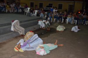 Muitos fiéis permaneceram na praça para assistirem a peça, que foi transmitida ao vivo no Instagram da Catedral e com a cobertura do Portal Porto Mídia e Redes Sociais da Paróquia.