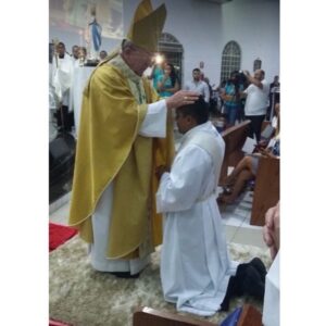A Diocese de Porto Nacional conta com mais um sacerdote, Pe. Douglas Aires de Lira, a ordenação aconteceu ontem,dia 06 de Julho de 2018, na Paróquia Santo Antônio, em Gurupi – TO, na região Sul do Estado. A solenidade foi presidida pelo Sr. Bispo Diocesano, Dom Romualdo Matias. Na homilia, o ordinário local destacou a importância do ministério sacerdotal: “O sacerdote é tirado do meio do povo, para o serviço da Igreja”. Ele ainda partilhou a preocupação com o mundo marcado pelo laicismo. E finalizou: “Diácono Douglas, não tenha medo, a vitória final é do Cristo ressuscitado”. O Pároco, Pe. Eldinei Carneiro e o Reitor Monsenhor Juarez deram testemunho do Diácono Douglas, destacando a sua humildade, piedade, popularidade e a paixão pelas coisas sagradas. Também as lideranças Arlete (Fátima -TO) e Heloísa (Paróquia Santo Antônio) testemunharam em favor do neo-sacerdote. O rito de ordenação é marcado por um profundo ensinamento teológico, catequético e litúrgico. Os momentos mais fortes são: Propósito do Eleito, Vestição, Entrega do Cálice e Patena, Ladainha e Oração Consegratória. A missa foi concelebrada por mais de 30 sacerdotes, destacando a presença do Vigário Geral, Pe. Valdemir Alves. Também muitos diáconos, religiosas, seminaristas e um grande número de fiéis participaram da cerimônia. Na sua fala, o Pe. Aires agradeceu a todos os presentes: “Meu maior sentimento é de gratidão, agradeço primeiramente a Deus, os bispos da nossa Diocese, especialmente Dom Geraldo Gusmão, que me acolheu no seminário, e Dom Romualdo Matias pela acolhida e confiança. Estiveram presentes mais de 7 caravanas de Fátima, Santa Rita, Oliveira de Fátima, Porto Nacional e Luzimangues. Aproximadamente, 1.600 pessoas participaram da ordenação. Após a missa foi oferecido um delicioso jantar no Recanto dos Ipês. As primeiras missas acontecerão amanhã, 07:00 – Capela Bom Jesus (Paróquia São João Batista) e às 19:30 – (Paróquia Santo Antônio).