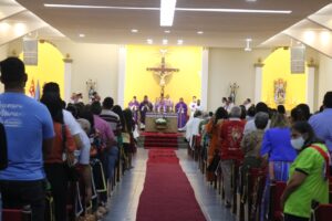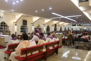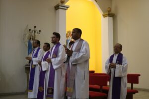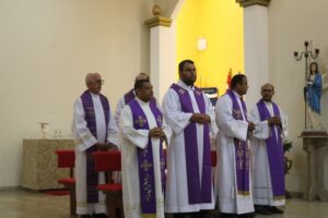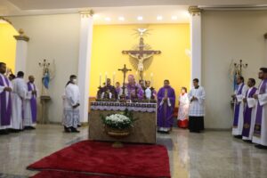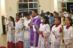 Após a saudação inicial, o Bispo Dom Romualdo Matias, solicitou ao Padre Deusimar Correa Dias (Vigário Forâneo), a leitura do decreto de nomeação, em seguida, o padre Vanderlan fez a profissão de fé diante do Bispo e da comunidade paroquial, ainda na programação da Santa missa Padre Vanderlan recebeu a chave do sacrário, a chave da igreja, os santos óleos, a estola e também os representantes das pastorais, grupos e movimentos e na continuidade seguiu-se a Liturgia da Palavra.