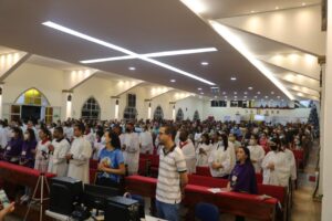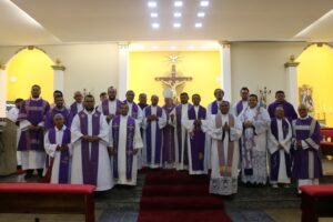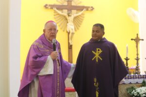 Padre Vanderlan em seu pronunciamento agradeceu a todos os presentes pela acolhida, e usou a frase do Salmo “quem sou eu Senhor para de mim lembrar e tratar com tanto carinho”, e mencionou ainda que “ o Padre sozinho não é nada , mas o Padre com o povo de Deus é tudo por que Deus é em nós, então vamos continuar firmes nossa caminhada na certeza de que Cristo é o centro de nossa caminhada.”