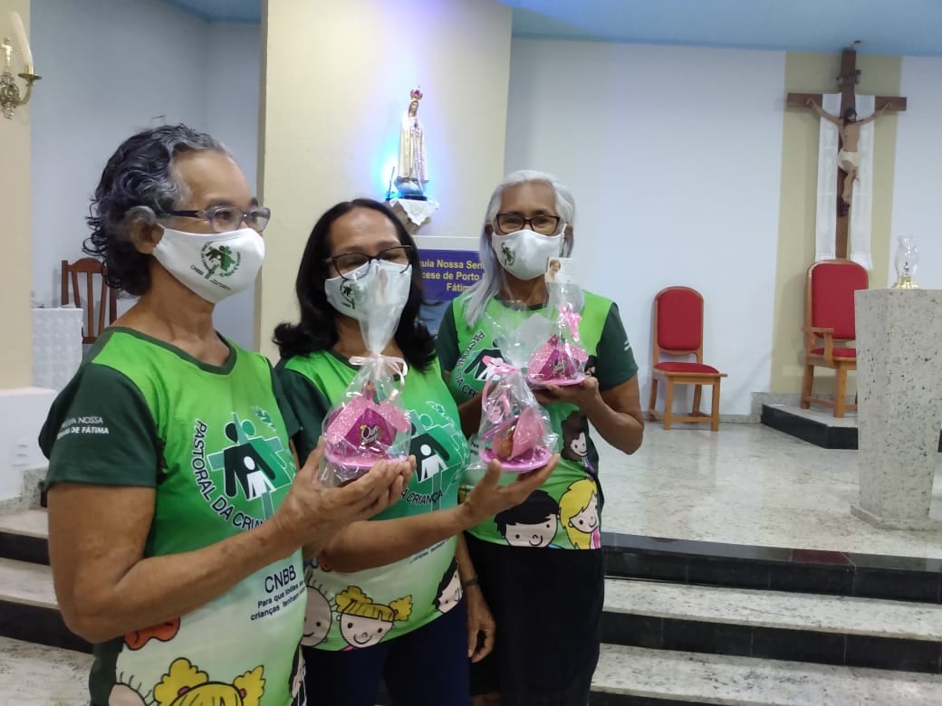 A Coordenação da pastoral da Criança na paróquia realizou um projeto de confecções de máscaras com o símbolo da pastoral da criança e distribuiu para as lideres, uma forma de animar as lideres e avançar com os trabalhos da pastoral nas comunidades mais carente da cidade de Fátima. Diante de toda essa problemática do Coronavirus, surge essa  ideia brilhante da Pastoral da Criança.