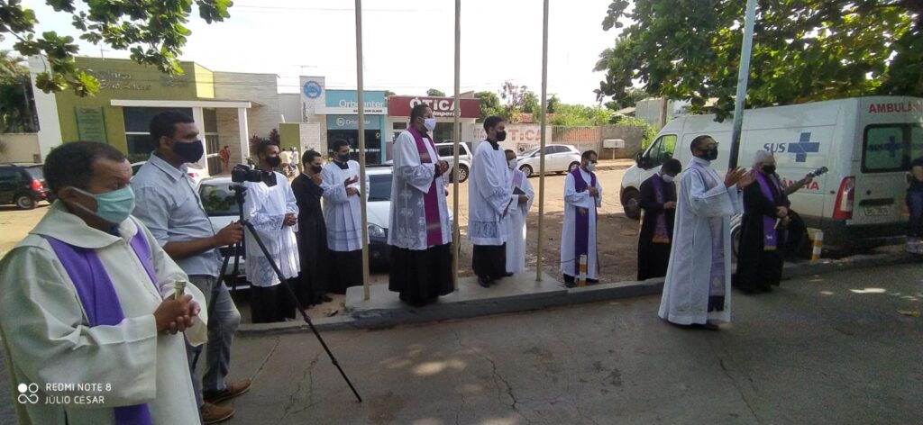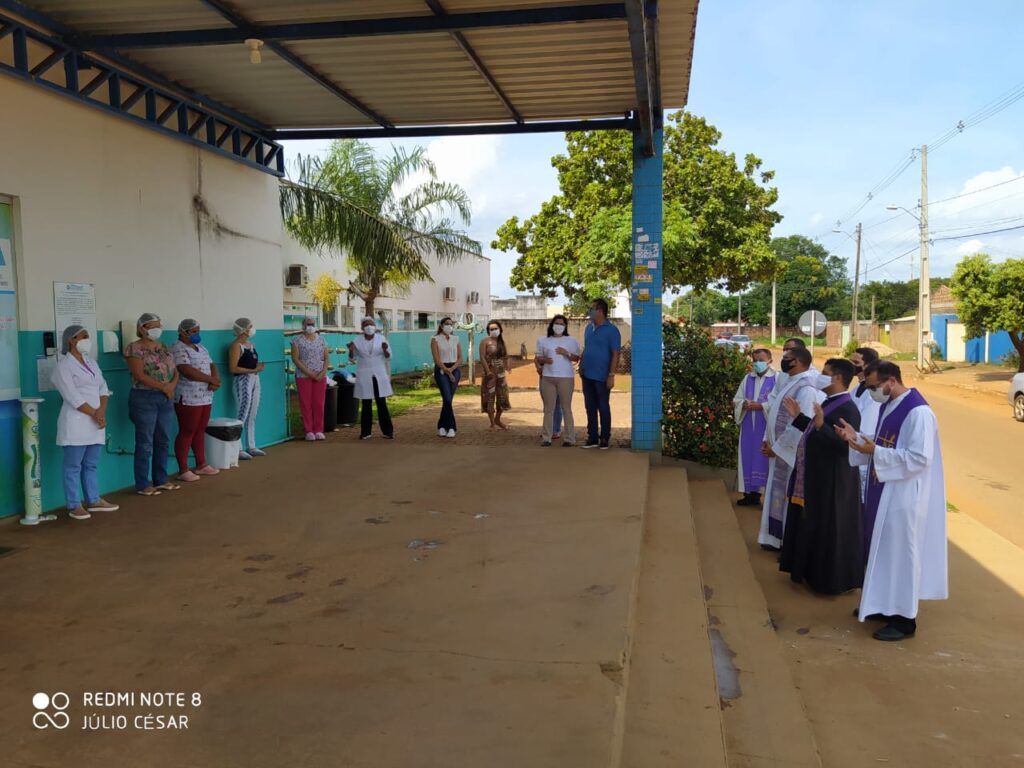 Nesta quinta-feira santa, 01 de abril, alguns padres da cidade de Porto Nacional visitaram as unidades hospitalares públicas no município, afim de rezar pelos e com os profissionais da saúde, verdadeiros combatentes da linha de frente de combate à pandemia de COVID-19 que se alonga por mais de um ano.