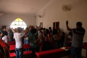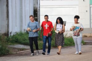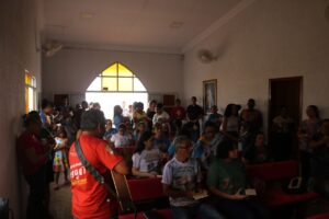 O Significado da palavra Evangelizar Proceder à evangelização em (algum lugar) ou entre (alguns indivíduos ou povo), com o Tema “Alegres em comunhão com toda a Igreja aqui estamos”. (Hb 13)”, e foi com este intuito que os fiéis da Paróquia de Nossa Senhora da Conceição de Gurupi fizeram na tarde deste sábado (04), saindo de porta a porta levando o evangelho para toda comunidade nas proximidades da Igreja Matriz, muitas experiências foram vividas neste dia, muitas palavras de afetos para quem precisa por meio do evangelho chegou ao coração das pessoas, este projeto de evangelização porta a porta continuará levando a palavra de Deus nas comunidades.