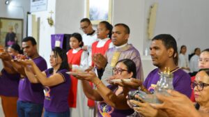 Sobre o sentido teológico das cinzas, o Pároco explicou que, “elas significam a transitoriedade, que tudo passa nessa vida: o poder, a riqueza e o prazer. Somos pó e para o pó voltaremos”. No momento do ofertório fiéis entraram com o banner da Campanha da Fraternidade, arroz, feijão, pão, vinho e hóstias. A CF 2023 tem como tema: “Fraternidade e Fome” e Lema: “Dai-lhes vós mesmos de comer”! (Mt 14, 16).