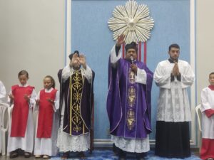 Pe. Eldinei Carneiro, Pároco da Catedral presidiu na noite do dia (22), às 19:00, na Catedral de Nossa Sra das Mercês, em Porto Nacional – TO, a Missa de Quarta-Feira de Cinzas (Abertura da Quaresma e da Campanha da Fraternidade).