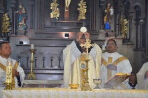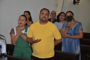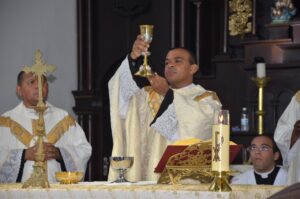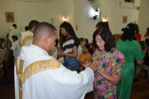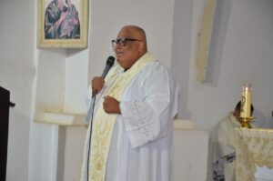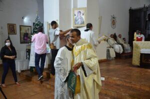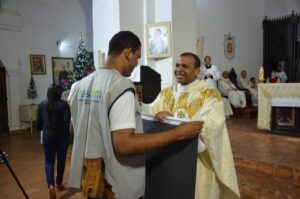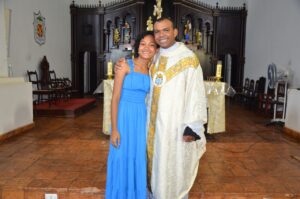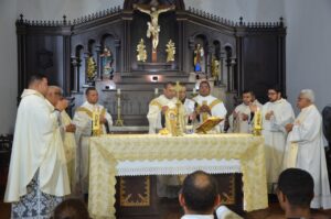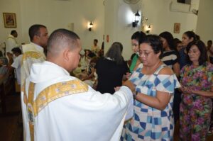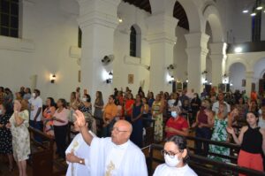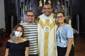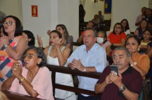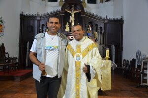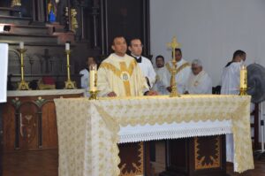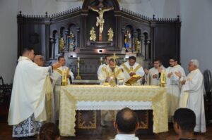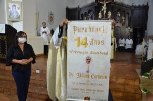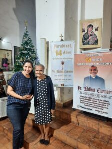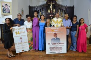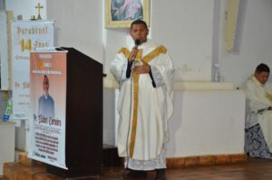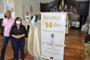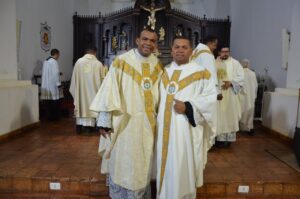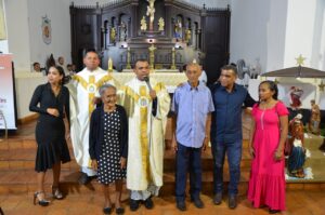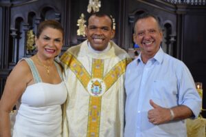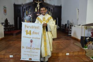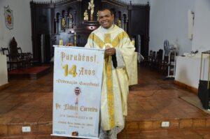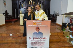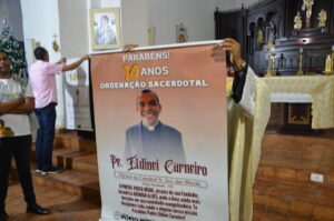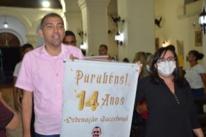 O Pe. Eldinei Carneiro presidiu na noite de ontem (27), às 19:00, na Catedral Nossa Sra das Mercês, os 14 anos de Ministério Sacerdotal e também do seu primo Pe. Dorivan Ribeiro. A homilia foi feita pelo Pe. José Francisco, Pároco de Brejinho de Nazaré, que destacou as qualidades de ambos: “São dois sacerdotes empunhados: Pe. Dorivan é muito humilde, companheiro e zeloso, o Pe. Eldinei é o homem da comunicação, inteligente e também humilde, estou muito feliz por compartilhar esse momento com vocês”.