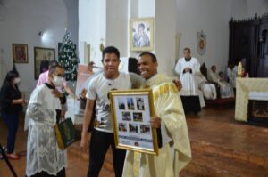 Ao final da missa, tiveram quatro homenagens: O Coordenador dos Ministros César Evangelista e João Victor destacaram algumas virtudes do homenageado: “Pe. Eldinei deu um grande dinamismo a essa paróquia, tem evangelizado muito pelos meio de comunicação, além de ser um padre presente”. Já o casal Eliane e Wellington entraram com um banner comemorativo e também o jornalista Rodrigo Alves do Portal Porto Mídia. O Pe. Dorivan Ribeiro pontuou: “Meu sentimento é de gratidão a Deus por esse momento, estou muito feliz por chegar até aqui”. O Pe. Eldinei Carneiro frisou: “A cruz faz parte do nosso ministério, mas ela nos configura ao Cristo, o papel do padre é mostrar Jesus e sua salvação, minha gratidão as comunidades São Judas, Imaculada e Catedral”.